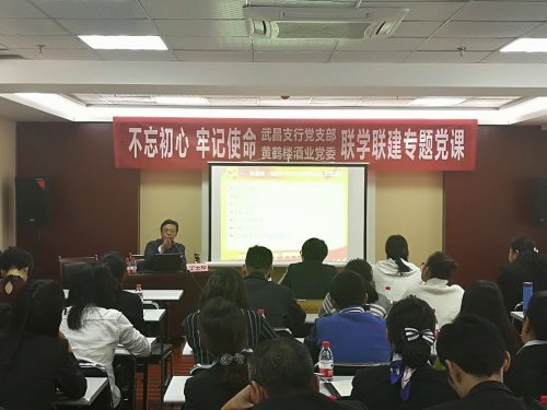 11月7日,交通银行武昌支行党支部与腾博会官网酒业党委开展了“不忘初心 牢记使命”联学联建专题党课,党课在武昌中南路交通银行七楼会议室进行,腾博会官网酒业党委副书记、副总经理麻玉侠,党委组织委员许凤娥,交通银行武昌支行行长曹蔚云参加党课学习。
